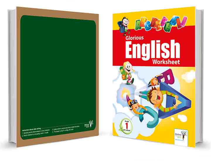English workbook It has grammar, three letters words, sentence making exercise, small and easy question answer phonograms, comprehension and component.